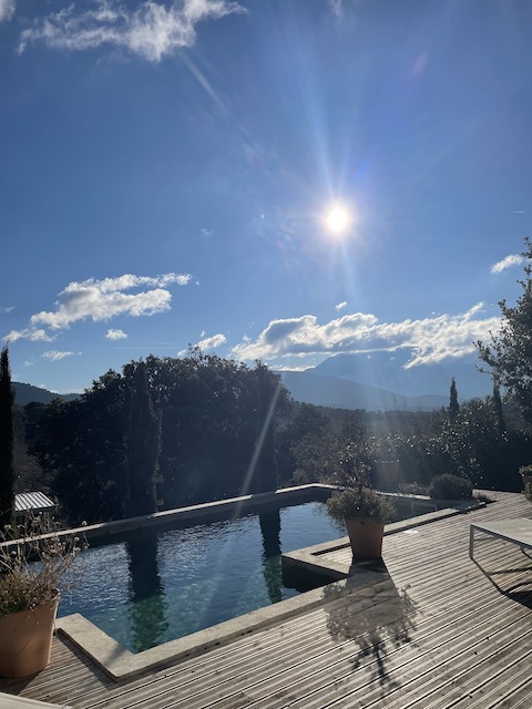 Privé zwembad van 3,5m x 8,5m met zonneterras en ligbedden